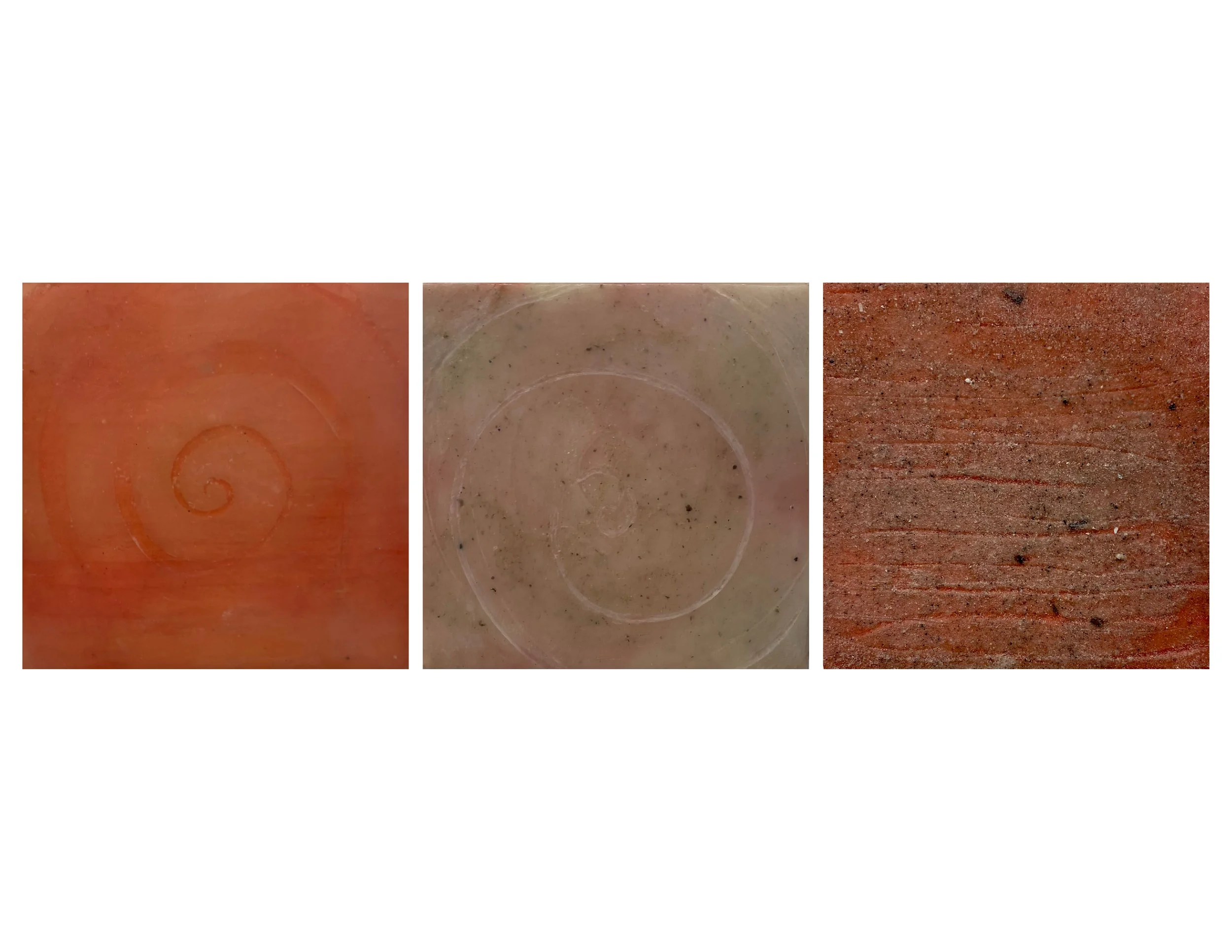 Encaustic, Japanese coral, eyeshadow and pigments on wood 8” x 8” x 3/4” (8)